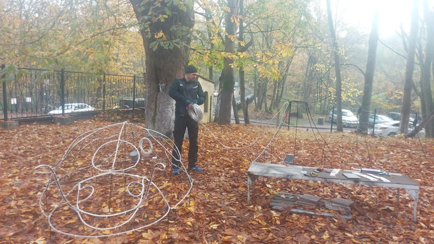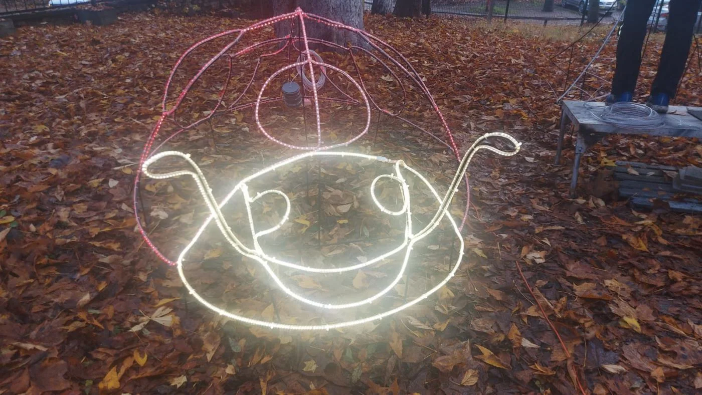 Еще в начале октября рабочие больницы закупили всё, что требуется для изготовления украшений. Сварили каркасы из проволоки, обтянули основания фигур разноцветной светодиодной лентой, подвели проводку, изготовили безопасные распределительные коробки.