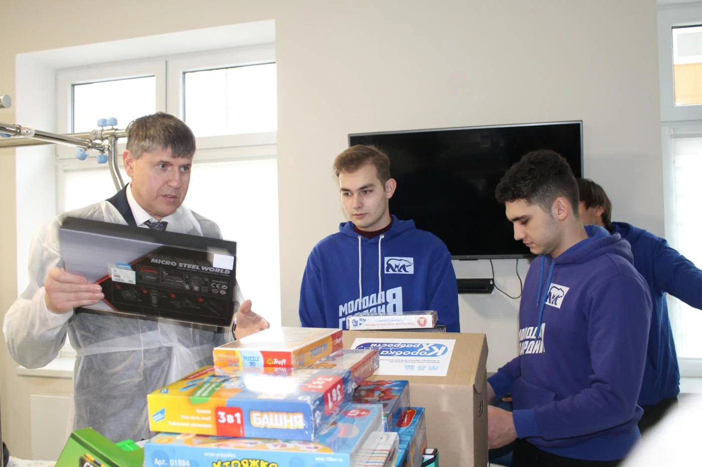 Часть собранных игрушек муниципалитеты передали в свои детские лечебные учреждения, другую же часть подарков привезли в Детскую областную больницу Калининградской области, где Андрей Кропоткин и его помощники поздравили детей из отделения травматологии.