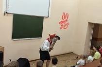 «Сегодня мы вам представим необычную работу, мы вам ее показываем впервые.Это экспериментальная постановка театрального летнего лагеря, мы с ребятами пофантазировали на тему клоунады и цирка. Фантазия на тему детства. Можете аплодировать, смеяться и радоваться», - обратился к зрителям руководитель студии. Постановка детям очень понравилась, каждую сцену ребята приветствовали громкими аплодисментами.