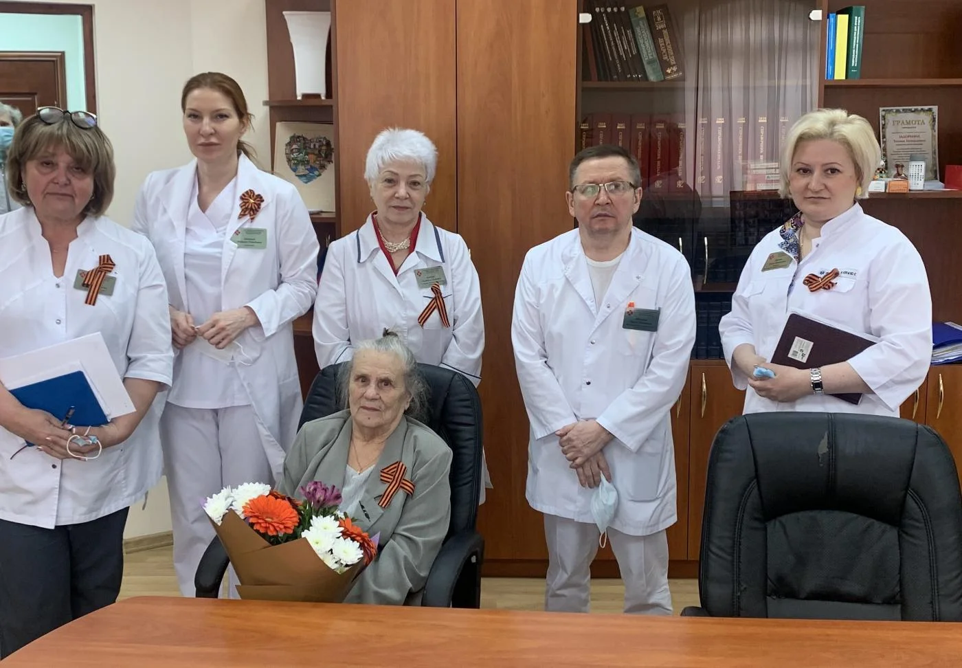 8 мая ветерана поздравили на предпраздничной планерке. Главный врач центра Татьяна Задоркина от лица всего коллектива поблагодарила Веру Филипповну и выразила надежду на то, что вместе они еще не один раз встретят этот великий праздник.