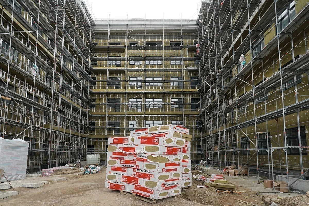 На строительной площадке трудятся в среднем по 400 человек ежедневно. На объекте активно ведется отделка внутренних помещений, монтаж фасада, слаботочных систем, водоснабжения и водоотведения. С декабря прошлого года здание отапливается, что дало возможность ускорить темп работ.