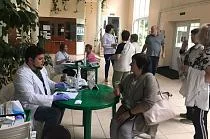 Консультации врача по медицинской профилактике получили 35 человек. Из порядка 70 пациентов, которые измерили уровень глюкозы в крови и артериальное давление, повышенные цифры были выявлены у 26 человек.