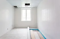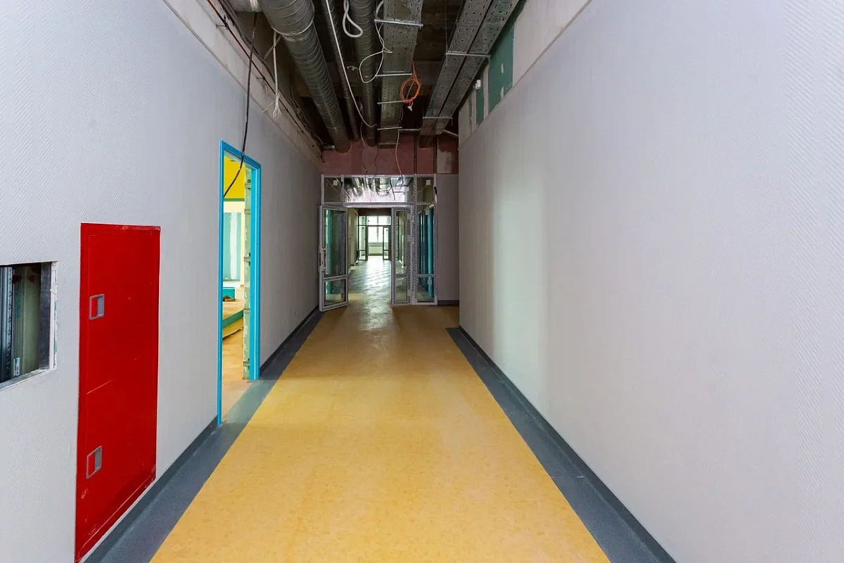 В настоящий момент полностью выполнены конструктивы основного здания, кровля, вставлены окна. Подрядчик ведет отделочные работы на всех этажах – гидроизоляцию полов, облицовку стен керамической плиткой, устройство покрытия полов керамической плиткой. Устанавливаются дверные блоки и вентиляционное оборудование, идет монтаж слаботочных систем и систем энергоснабжения. В завершающей стадии работы по благоустройству и ограждению территории.
