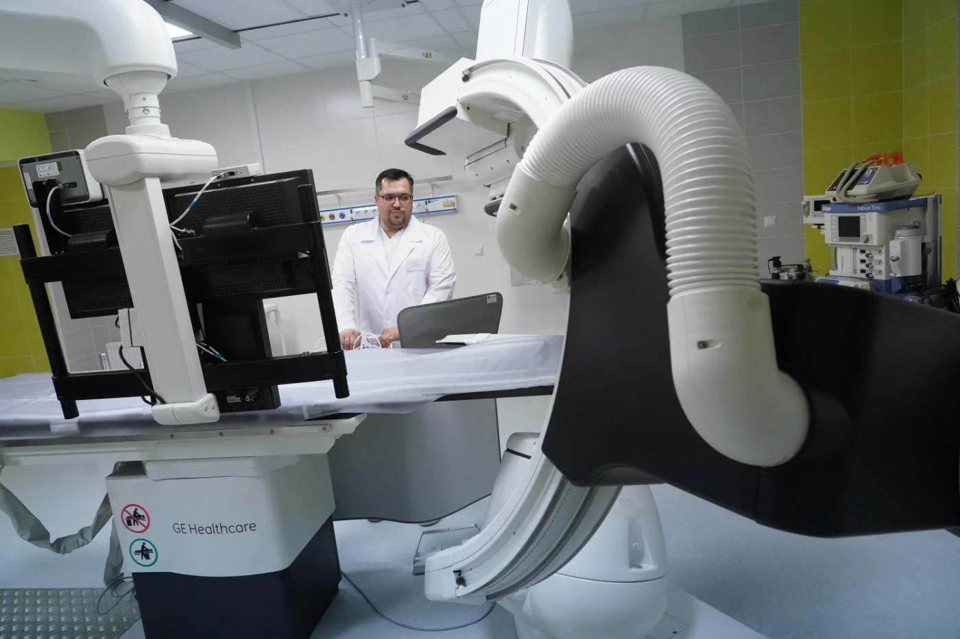 В настоящий момент в помещениях сосудистого центра полностью завершен капитальный ремонт, смонтирован ангиограф экспертного класса. Аппарат позволит проводить более семисот хирургических манипуляций в год. Параллельно с 26 марта начался первый этап обучения персонала – врачей рентген-лаборантов, которые буду задействованы в работе в специализированной рентген-операционной.